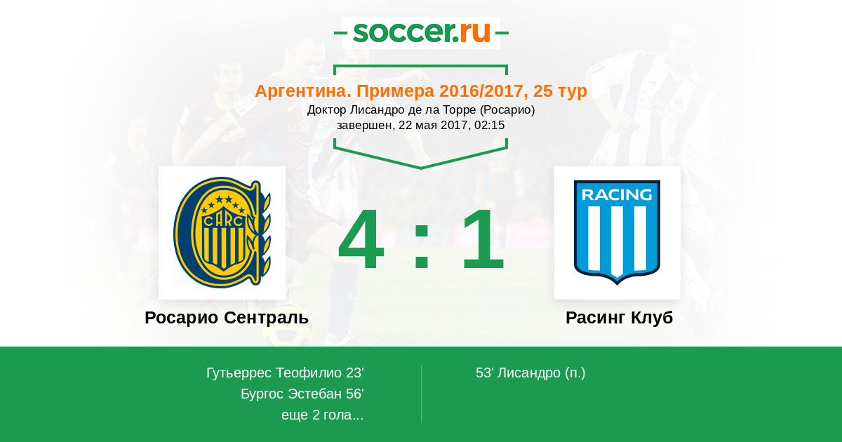Аргентина. Суперлига 04.06.2001 Расинг Клуб Логотип футбольный клуб Расинг Клуб (Авельянеда) 4:1 Логотип футбольный клуб Росарио Сентраль Росарио Сентраль