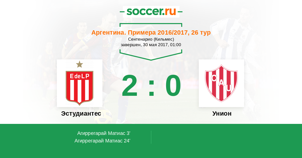Аргентина. Суперлига 23.05.2016 Унион Логотип футбольный клуб Унион (Санта-Фе) 1:1 Логотип футбольный клуб Эстудиантес (Ла-Плата) Эстудиантес