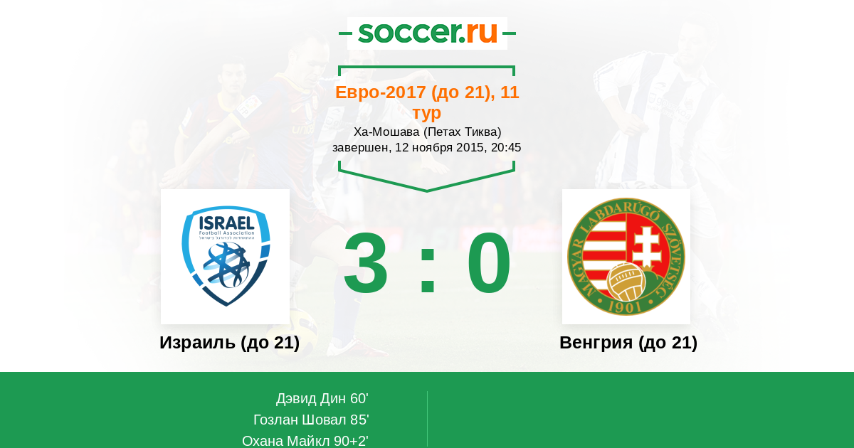 Израиль (до 21) 5:1 3:0 2:1