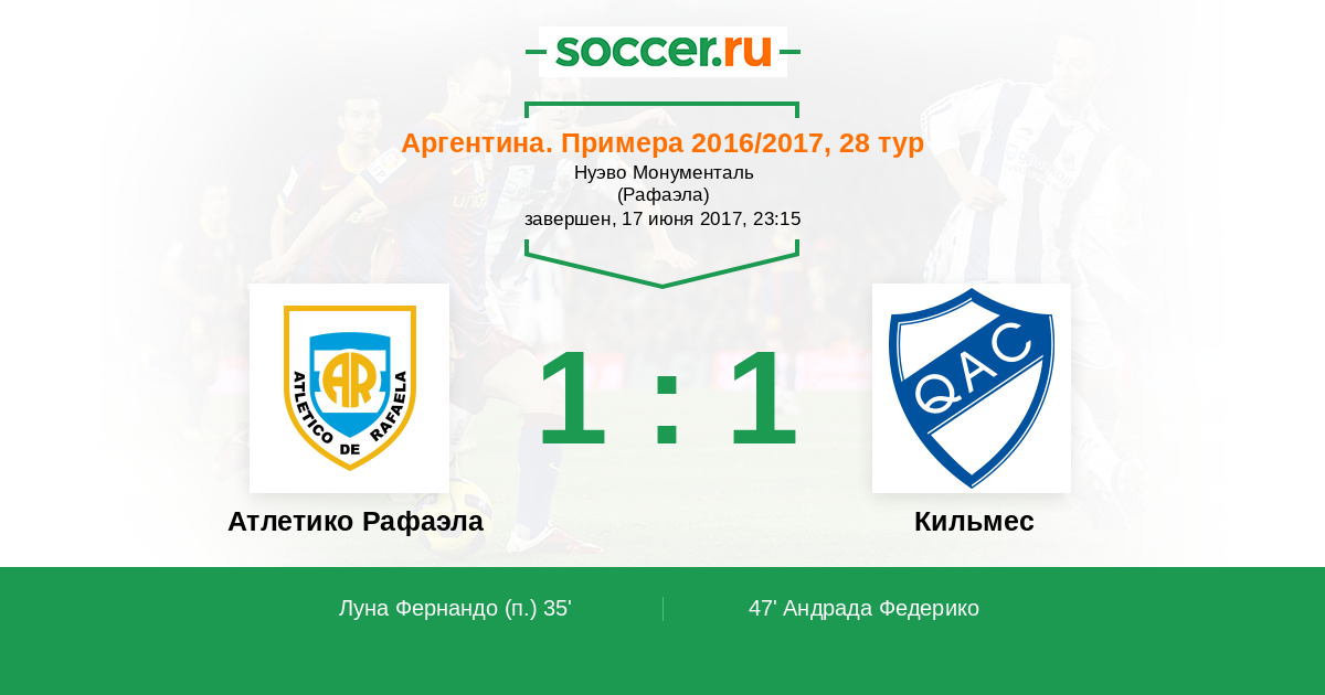 Аргентина. Суперлига 18.10.2013 Кильмес Логотип футбольный клуб Кильмес 1:1 Логотип футбольный клуб Атлетико Рафаэла Атлетико Рафаэла