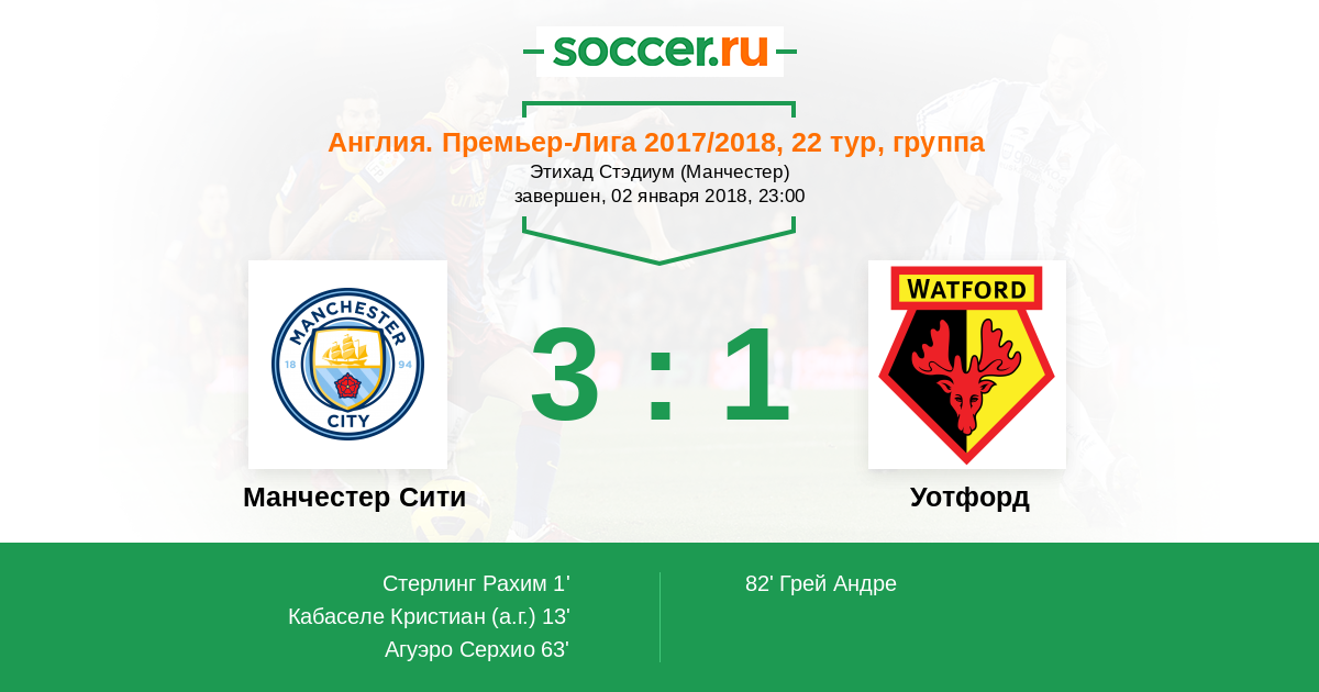 Манчестер Сити 2 - 0 Уотфорд