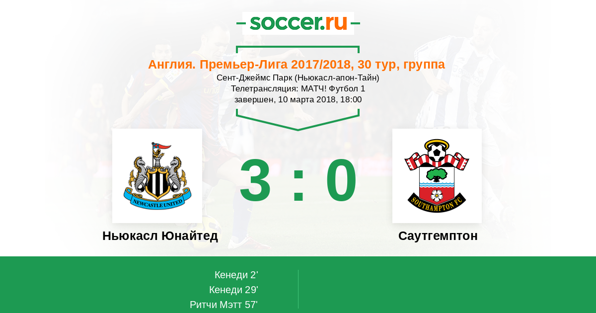 Англия. Премьер-Лига 15.10.2017 Саутгемптон Логотип футбольный клуб Саутгемптон 2:2 Логотип футбольный клуб Ньюкасл Юнайтед (Ньюкасл-апон-Тайн) Ньюкасл Юнайтед