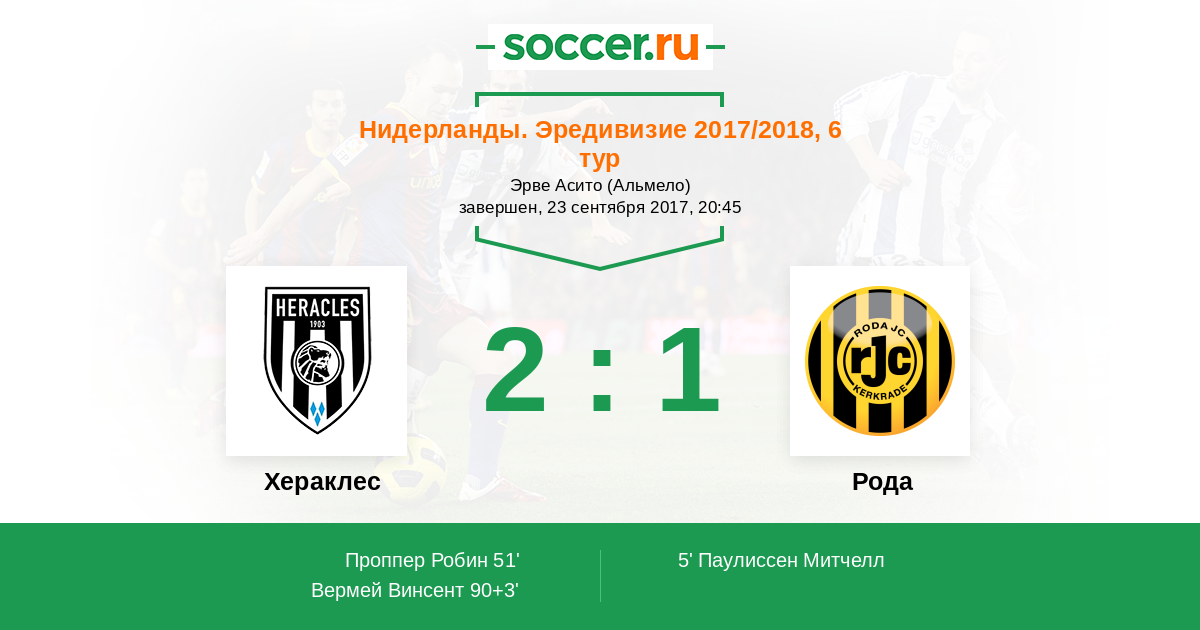 Нидерланды. Эредивизи 19.02.2010 Рода Логотип футбольный клуб Рода (Керкраде) 2:1 Логотип футбольный клуб Хераклес (Алмело) Хераклес
