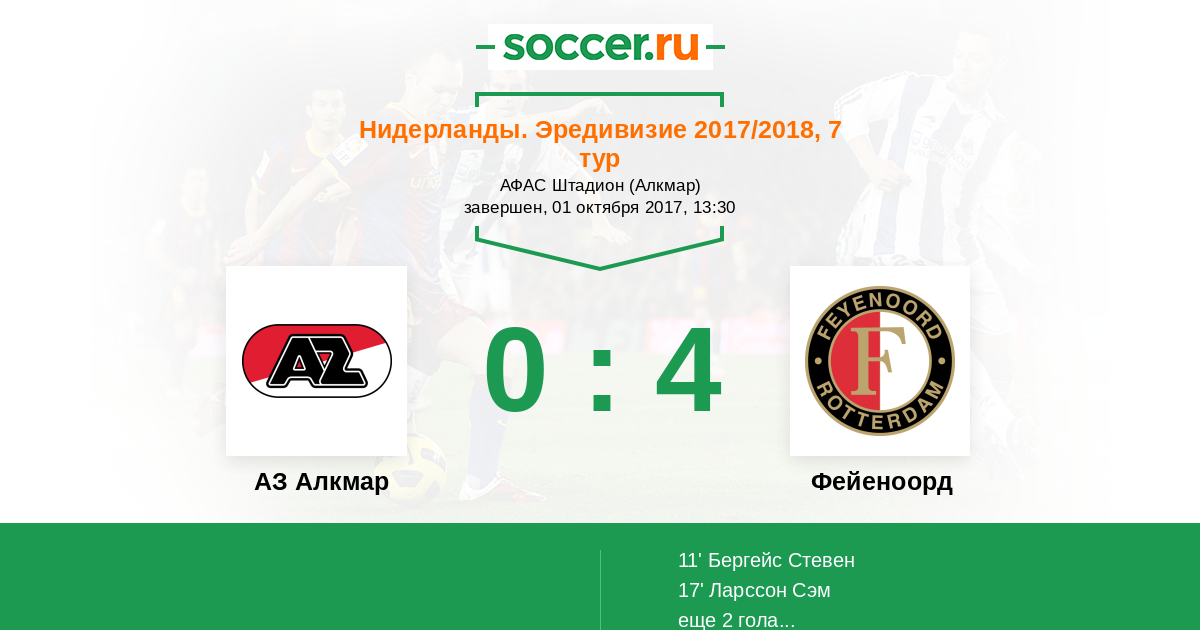 Нидерланды. Эредивизи 12.03.2017 Фейеноорд Логотип футбольный клуб Фейеноорд (Роттердам) 5:2 Логотип футбольный клуб АЗ Алкмар АЗ Алкмар