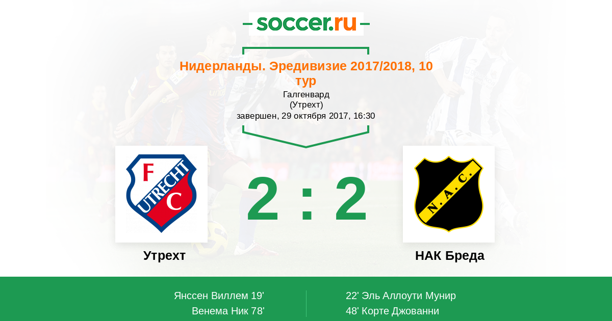 Нидерланды. Эредивизи 23.12.2017 НАК Бреда Логотип футбольный клуб НАК Бреда 3:1 Логотип футбольный клуб Утрехт Утрехт