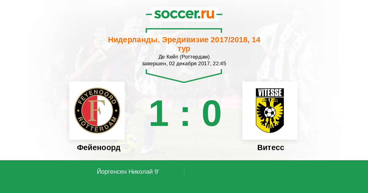 Нидерланды. Эредивизи 17.12.2016 Фейеноорд Логотип футбольный клуб Фейеноорд (Роттердам) 3:1 Логотип футбольный клуб Витесс (Арнем) Витесс
