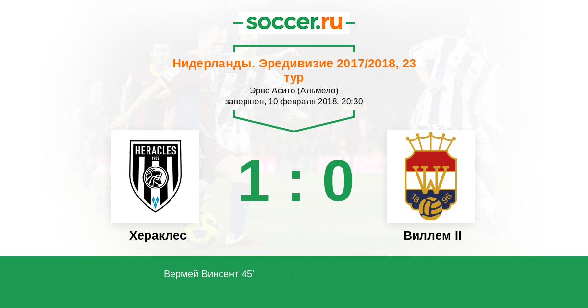 Нидерланды. Эредивизи 04.02.2017 Виллем II Логотип футбольный клуб Виллем II (Тилбург) 1:3 Логотип футбольный клуб Хераклес (Алмело) Хераклес