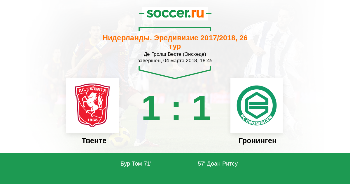 Нидерланды. Эредивизи 24.09.2017 Гронинген Логотип футбольный клуб Гронинген 1:0 Логотип футбольный клуб Твенте (Энсхеде) Твенте