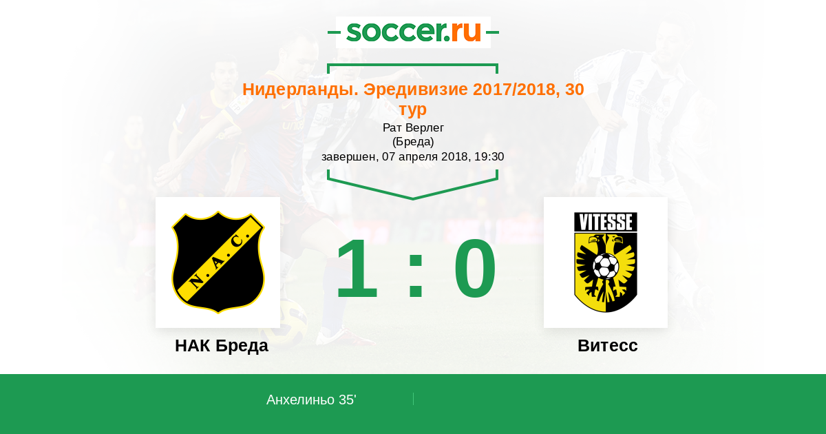 Нидерланды. Эредивизи 13.04.2010 Витесс Логотип футбольный клуб Витесс (Арнем) 1:1 Логотип футбольный клуб НАК Бреда НАК Бреда