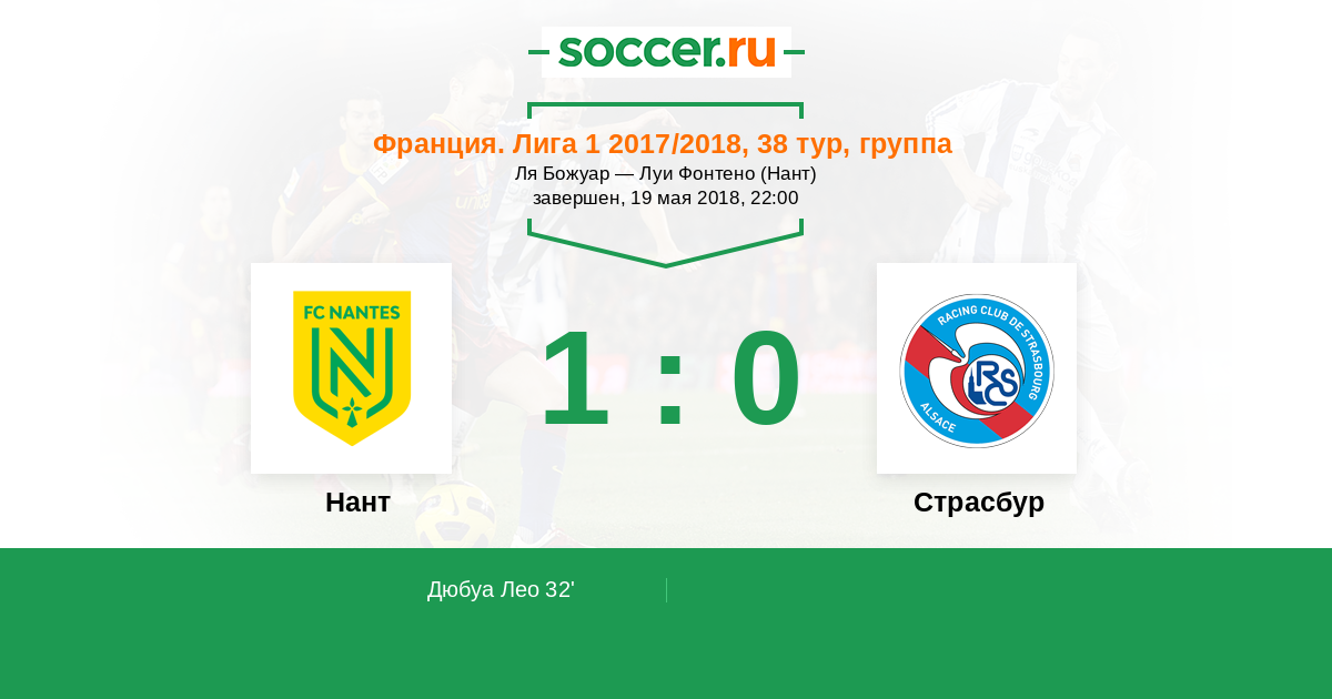 Франция. Лига 1 24.05.2019 Нант Логотип футбольный клуб Нант 0:1 Логотип футбольный клуб Страсбур Страсбур