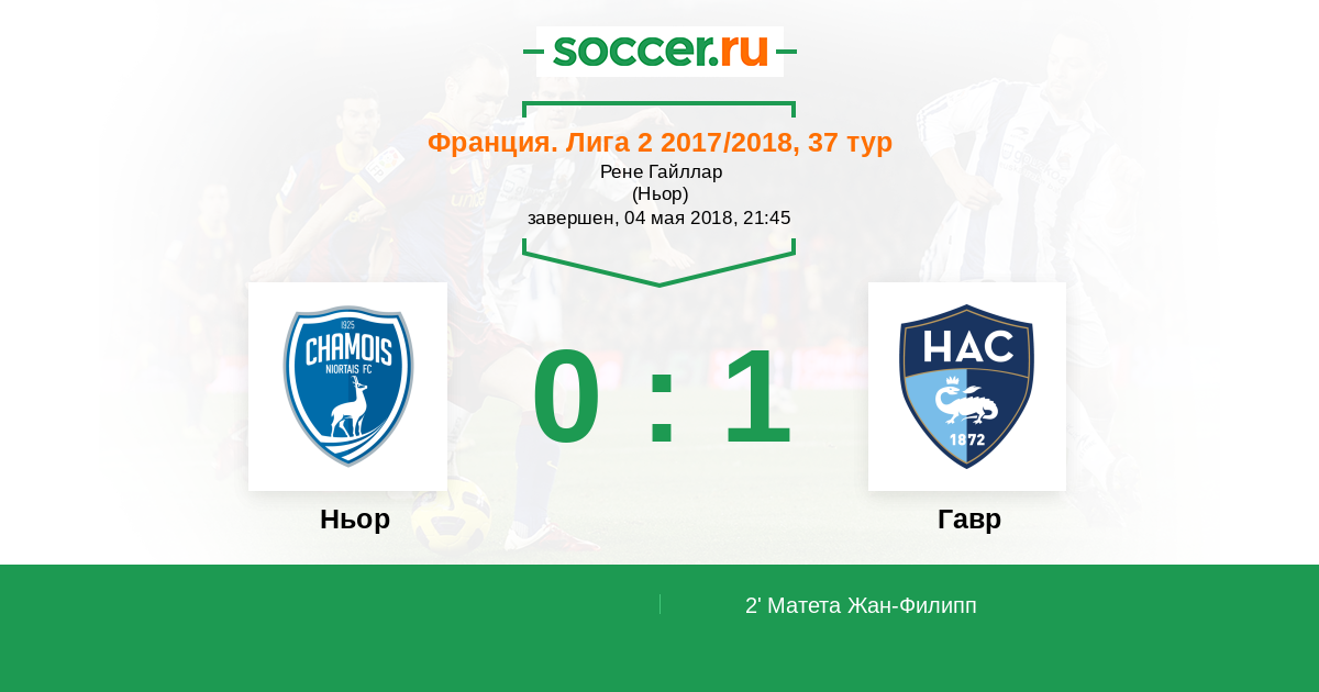 Франция. Лига 2 05.05.2017 Гавр Логотип футбольный клуб Гавр 0:0 Логотип футбольный клуб Ньор Ньор