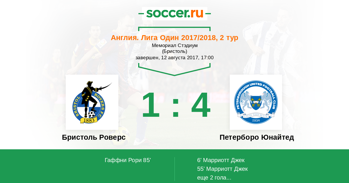 Англия. Первая Футбольная Лига 04.08.2018 Петерборо Юнайтед Логотип футбольный клуб Петерборо Юнайтед 2:1 Логотип футбольный клуб Бристоль Роверс Бристоль Роверс