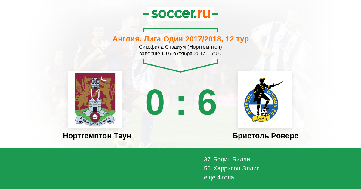 Англия. Первая Футбольная Лига 07.01.2017 Бристоль Роверс Логотип футбольный клуб Бристоль Роверс 5:0 Логотип футбольный клуб Нортгемптон Таун Нортгемптон Таун