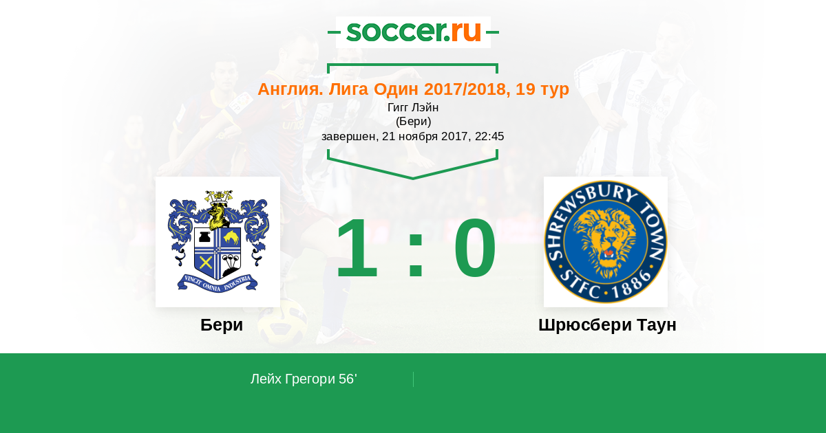 Англия. Первая Футбольная Лига 04.02.2017 Шрюсбери Таун Логотип футбольный клуб Шрюсбери Таун 2:1 Логотип футбольный клуб Бери Бери