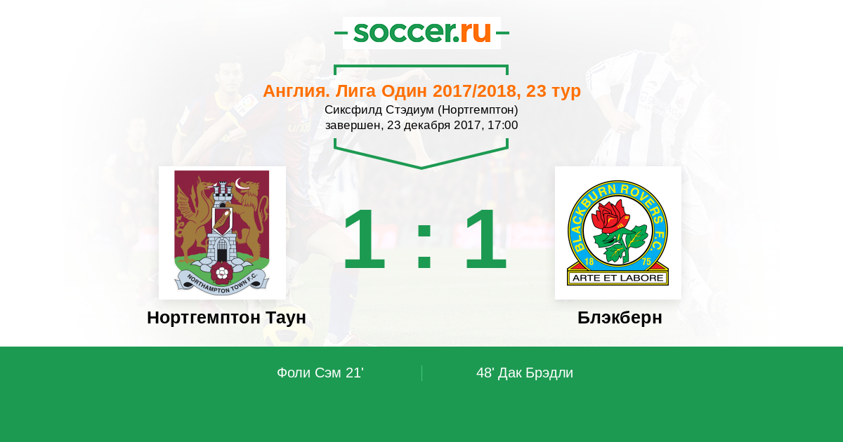 Нортгемптон Таун 1:1 0:0 1:1