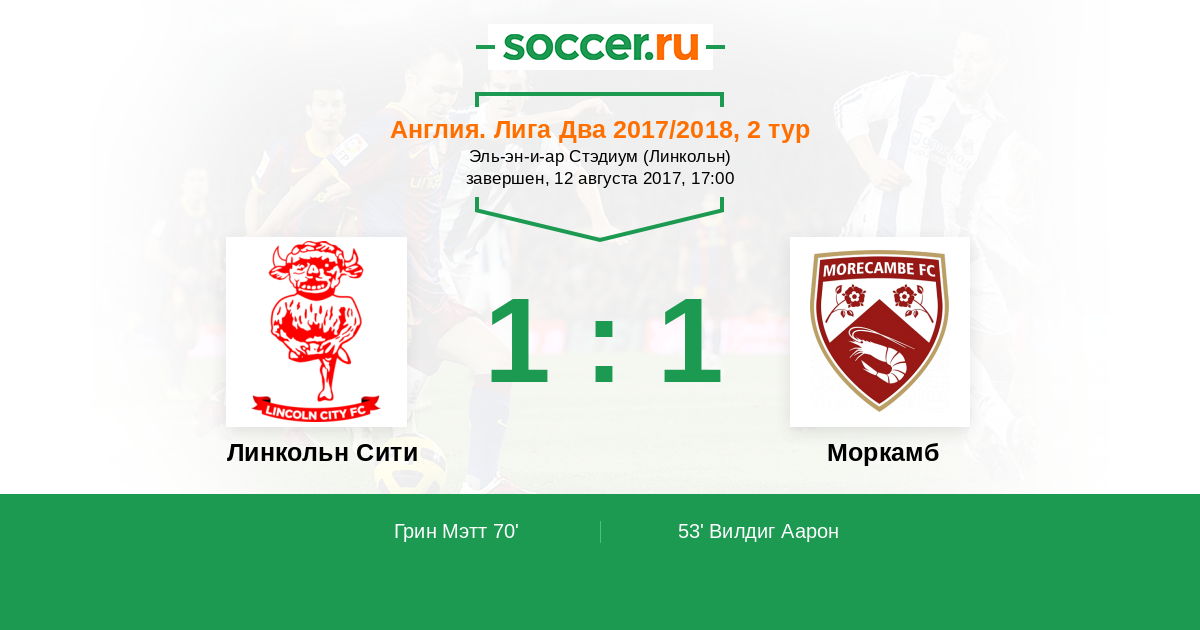 Англия. Вторая Футбольная Лига 24.03.2018 Моркамб Логотип футбольный клуб Моркамб 0:0 Логотип футбольный клуб Линкольн Сити Линкольн Сити