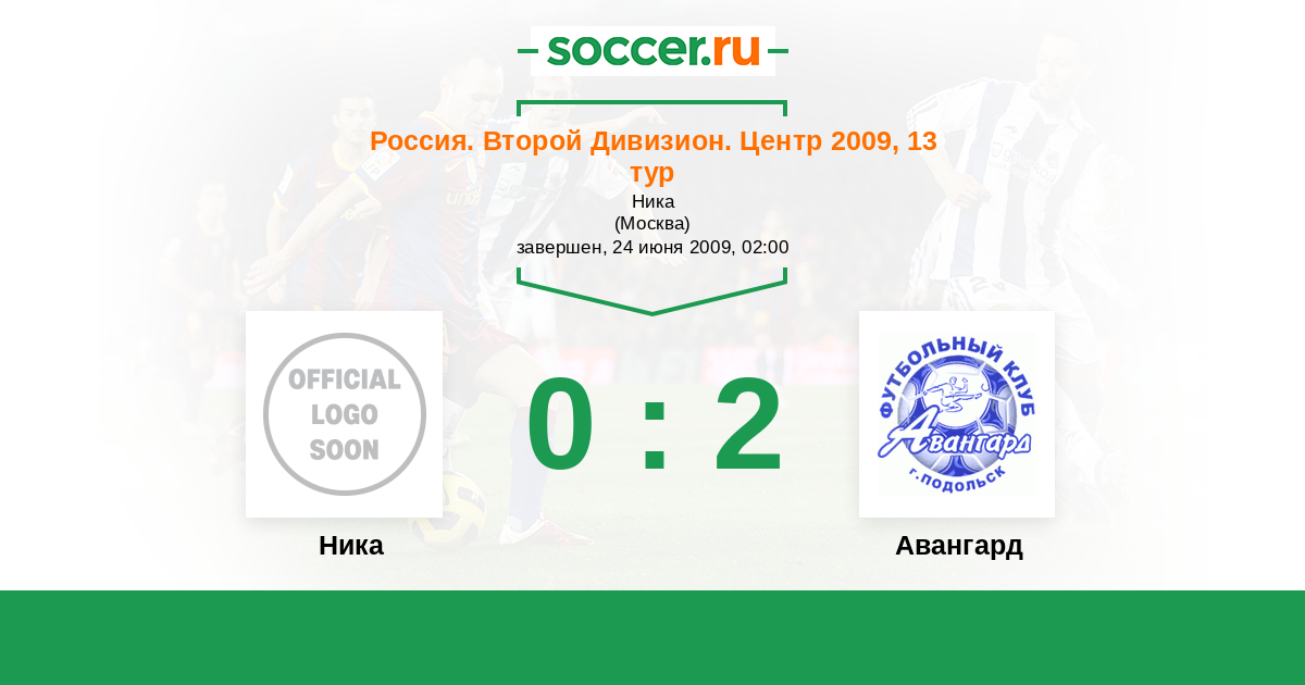 Россия. Вторая лига. Группа 3 25.09.2009 Авангард Логотип футбольный клуб Авангард (Подольск) 5:0 Логотип футбольный клуб Ника (Москва) Ника