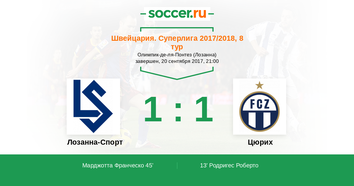 Швейцария. Суперлига 17.12.2017 Лозанна-Спорт Логотип футбольный клуб Лозанна-Спорт 5:1 Логотип футбольный клуб Цюрих Цюрих