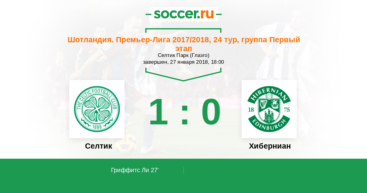 Шотландия. Премьер-Лига 26.01.2014 Хиберниан Логотип футбольный клуб Хиберниан (Эдинбург) 0:4 Логотип футбольный клуб Селтик (Глазго) Селтик
