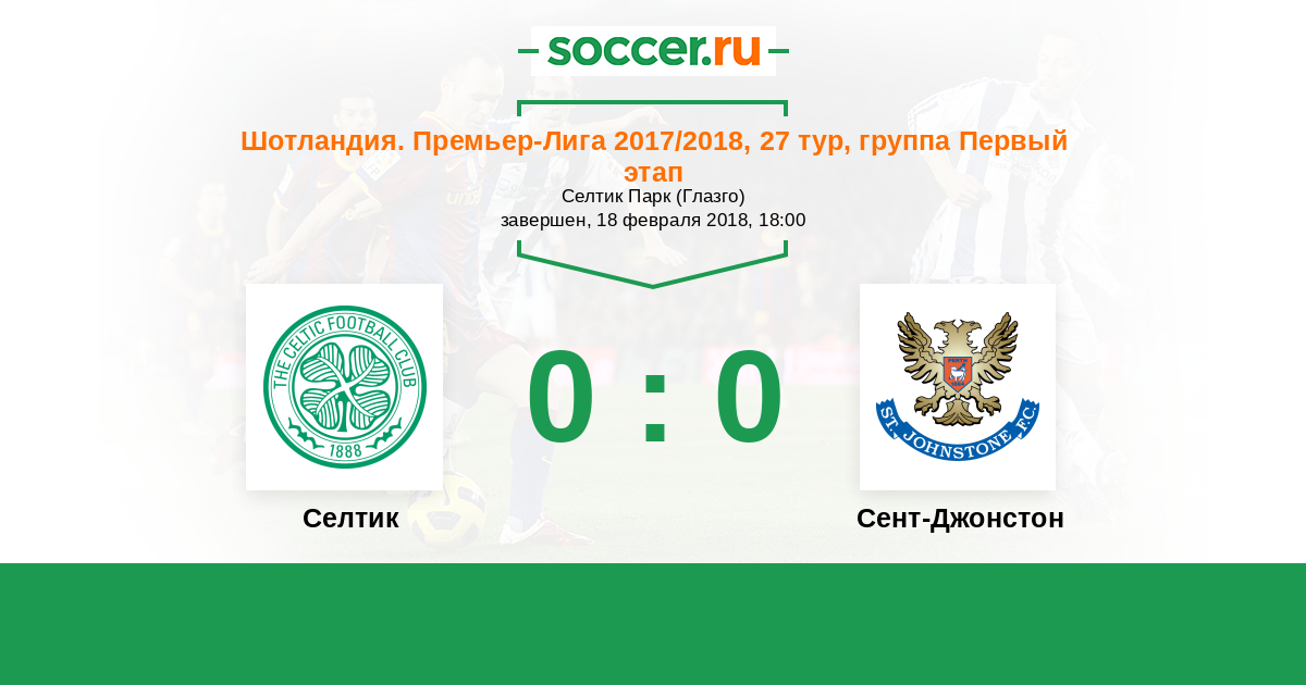 Шотландия. Премьер-Лига 25.01.2017 Селтик Логотип футбольный клуб Селтик (Глазго) 1:0 Логотип футбольный клуб Сент-Джонстон (Перт) Сент-Джонстон