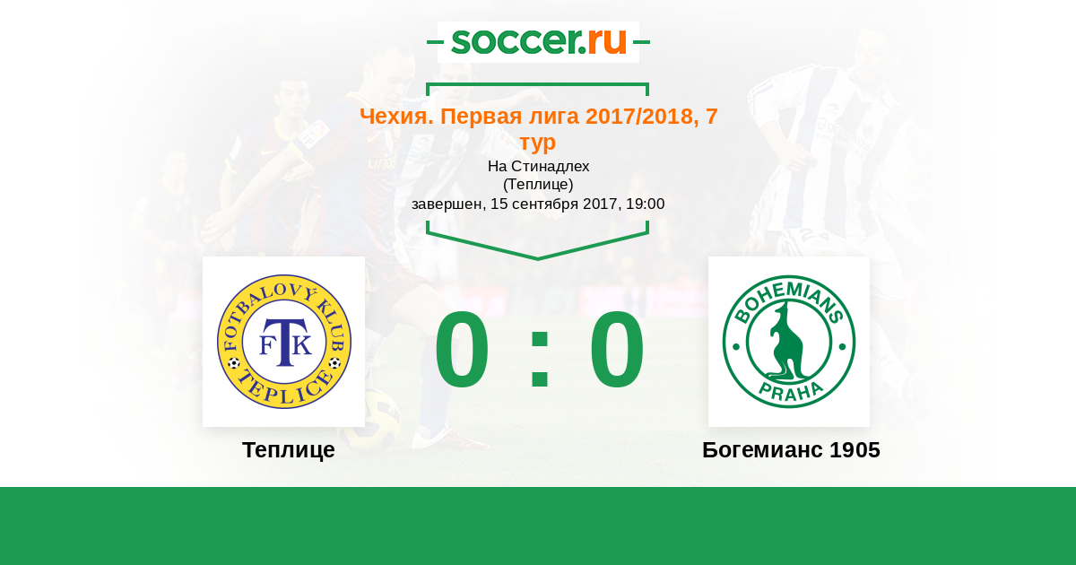 Чехия. Первая Лига 18.03.2018 Богемианс 1905 Логотип футбольный клуб Богемианс 1905 (Прага) 2:0 Логотип футбольный клуб Теплице Теплице