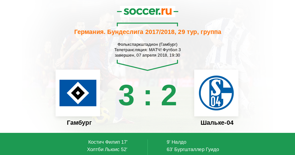Германия. Бундеслига 19.11.2017 Шальке-04 Логотип футбольный клуб Шальке-04 (Гельзенкирхен) 2:0 Логотип футбольный клуб Гамбург Гамбург