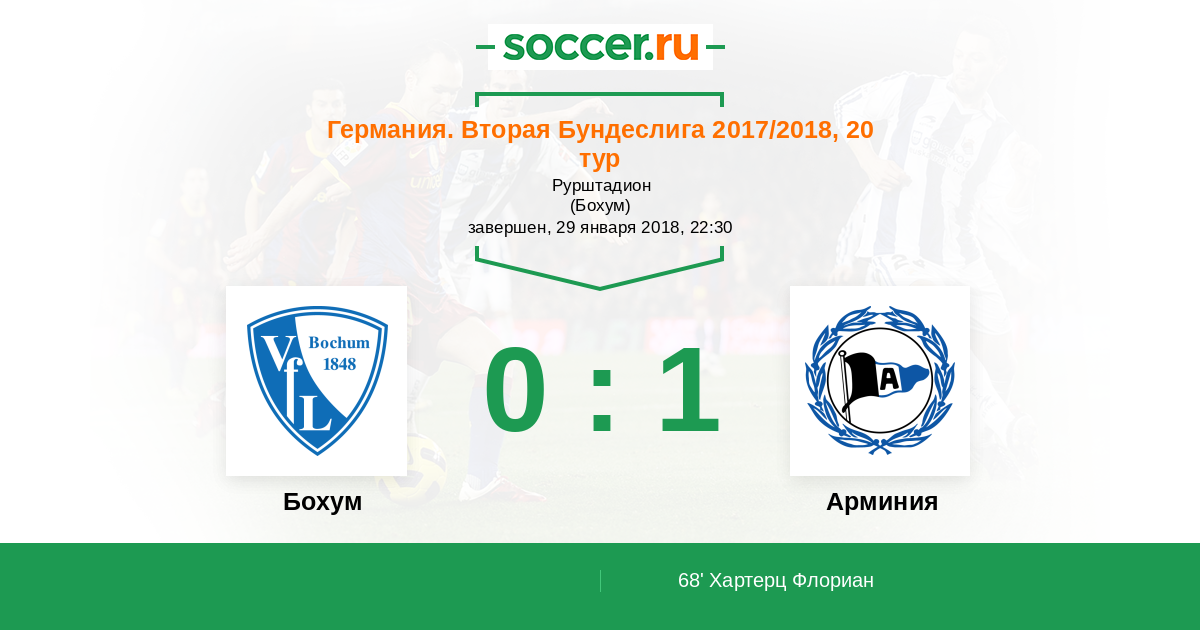 Германия. Бундеслига 2 28.01.2020 Арминия Логотип футбольный клуб Арминия (Билефельд) 2:0 Логотип футбольный клуб Бохум Бохум