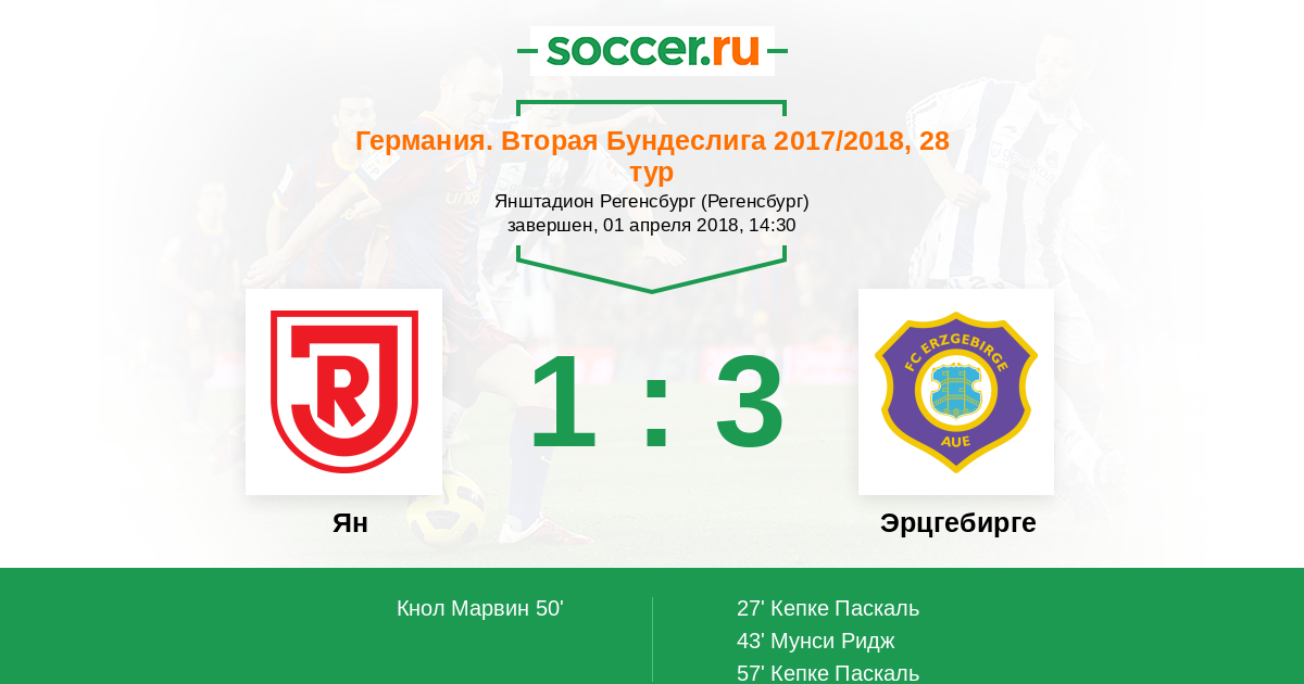 Германия. Третья лига 30.03.2010 Ян Логотип футбольный клуб Ян (Регенсбург) 2:1 Логотип футбольный клуб Эрцгебирге (Ауэ) Эрцгебирге