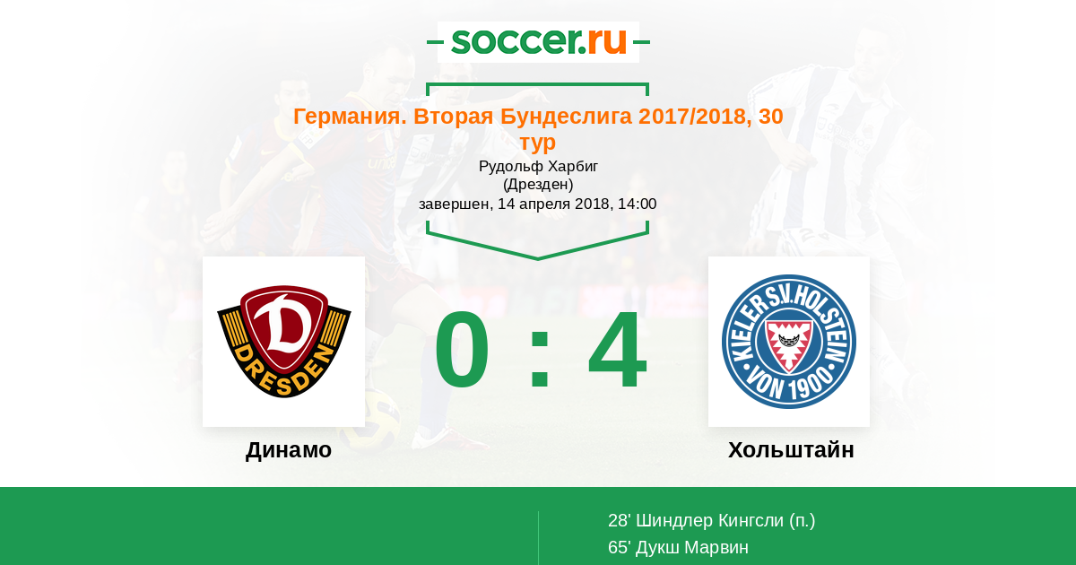 Германия. Бундеслига 2 16.04.2022 Динамо Логотип футбольный клуб Динамо (Дрезден) 0:0 Логотип футбольный клуб Хольштайн (Киль) Хольштайн