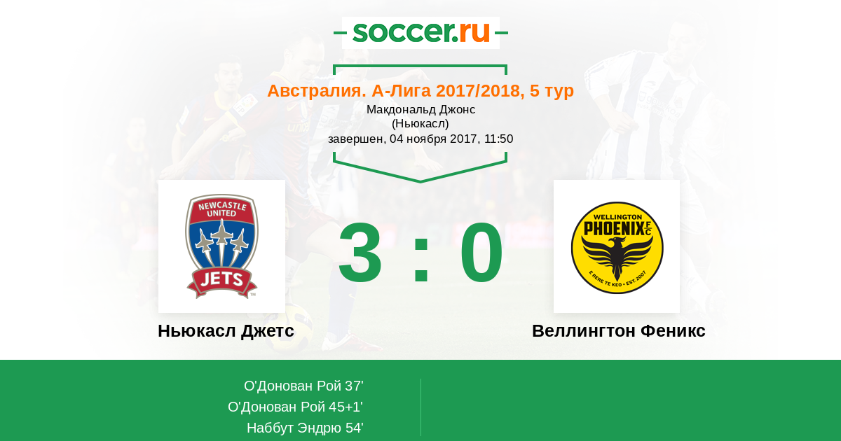 Австралия. А-Лига 18.11.2012 Ньюкасл Джетс Логотип футбольный клуб Ньюкасл Джетс 0:3 Логотип футбольный клуб Веллингтон Феникс Веллингтон Феникс