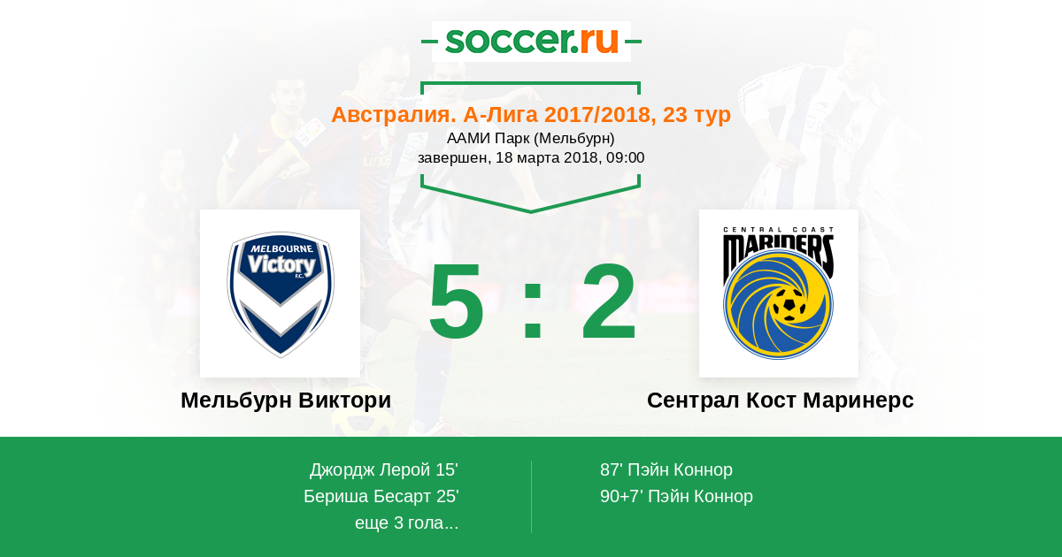 Австралия. А-Лига 29.10.2017 Сентрал Кост Маринерс Логотип футбольный клуб Сентрал Кост Маринерс 1:1 Логотип футбольный клуб Мельбурн Виктори Мельбурн Виктори