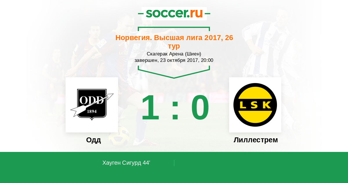 Норвегия. Высшая лига 09.08.2010 Одд Логотип футбольный клуб Одд (Шиен) 2:1 Логотип футбольный клуб Лиллестрем Лиллестрем