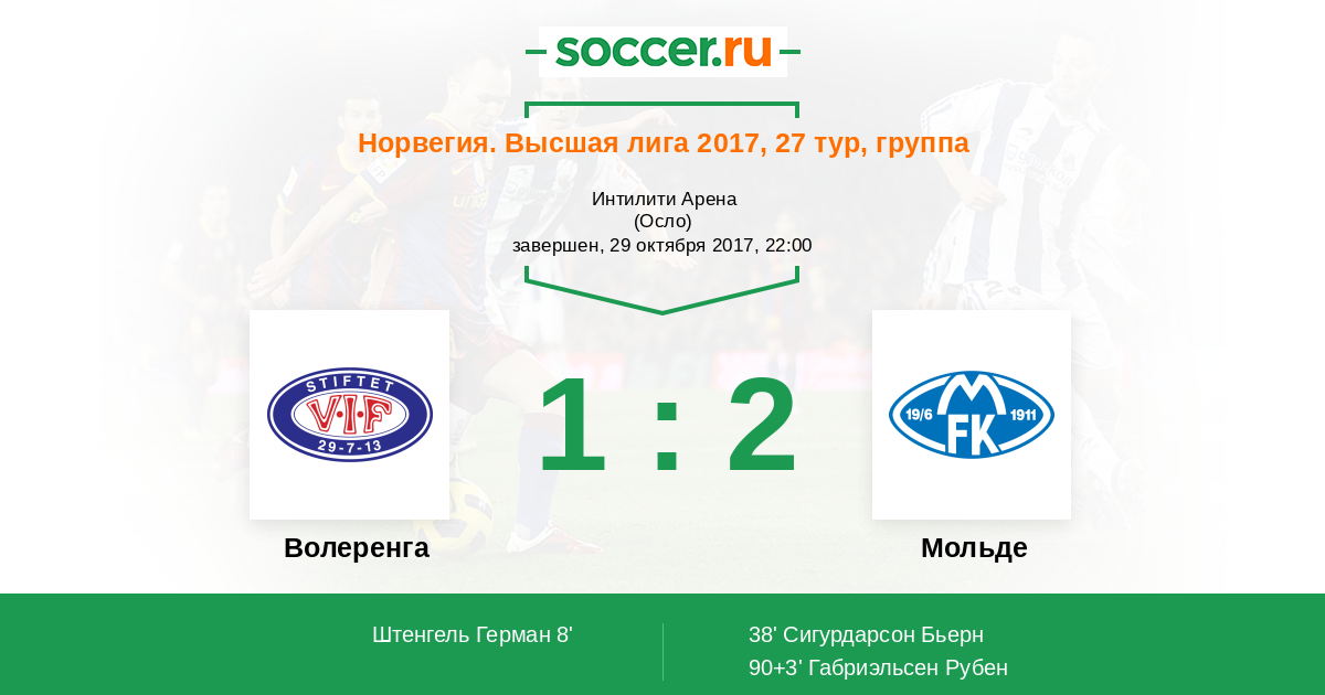 Норвегия. Высшая лига 14.07.2012 Волеренга Логотип футбольный клуб Волеренга (Осло) 1:2 Логотип футбольный клуб Мольде Мольде