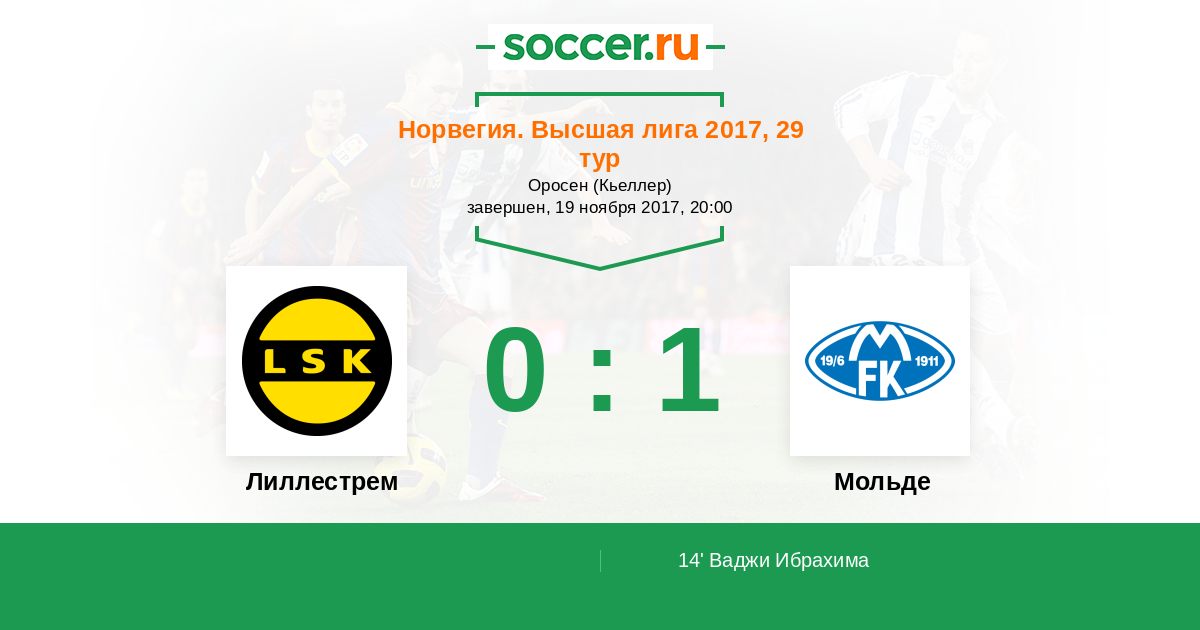 Норвегия. Высшая лига 06.11.2016 Лиллестрем Логотип футбольный клуб Лиллестрем 1:0 Логотип футбольный клуб Мольде Мольде