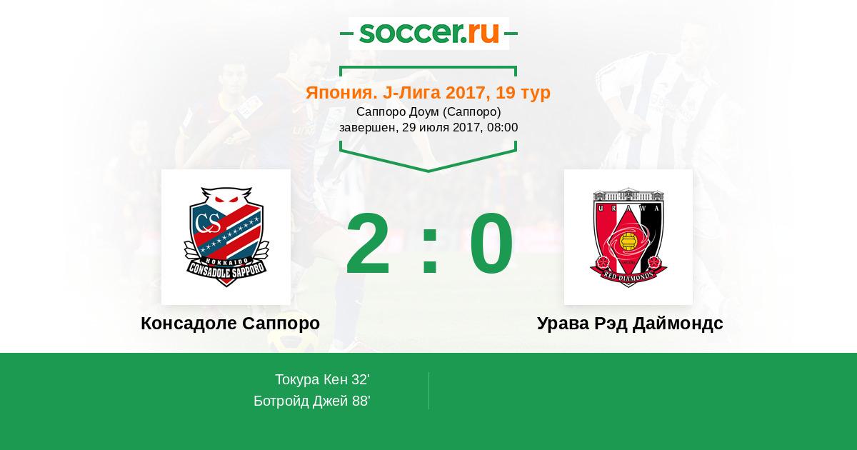 Япония. J-Лига 1 22.04.2017 Урава Рэд Даймондс Логотип футбольный клуб Урава Рэд Даймондс (Сайтама) 3:2 Логотип футбольный клуб Консадоле Саппоро Консадоле Саппоро