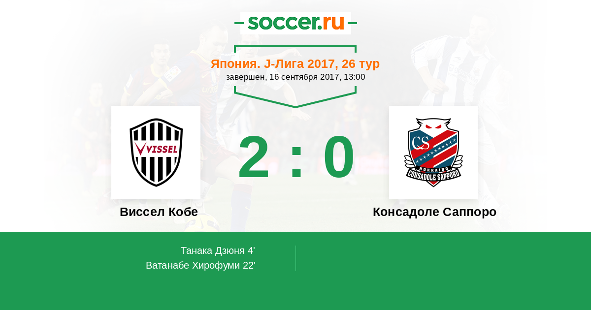 Япония. J-Лига 1 04.06.2017 Консадоле Саппоро Логотип футбольный клуб Консадоле Саппоро 1:2 Логотип футбольный клуб Виссел Кобе Виссел Кобе