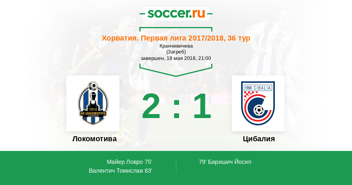 Хорватия. Первая лига 18.05.2018 Локомотива   2:1   Цибалия
