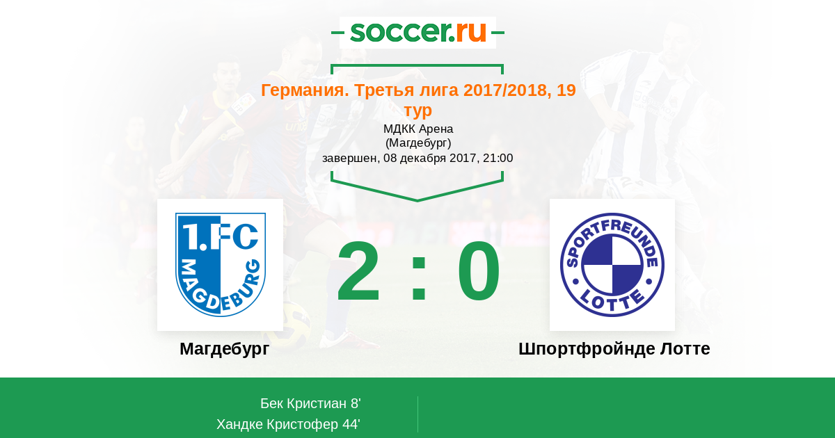Магдебург 1:0 0:0 1:0