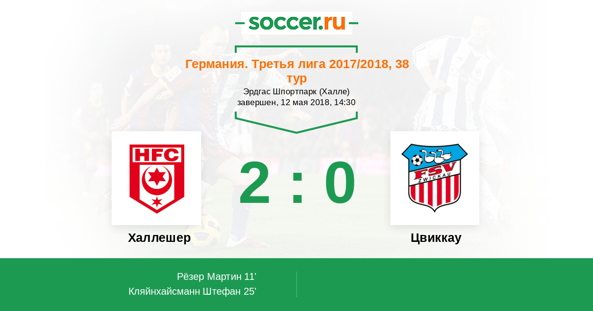 Германия. Третья лига 02.04.2017 Цвиккау Логотип футбольный клуб Цвиккау 2:0 Логотип футбольный клуб Халлешер Халлешер