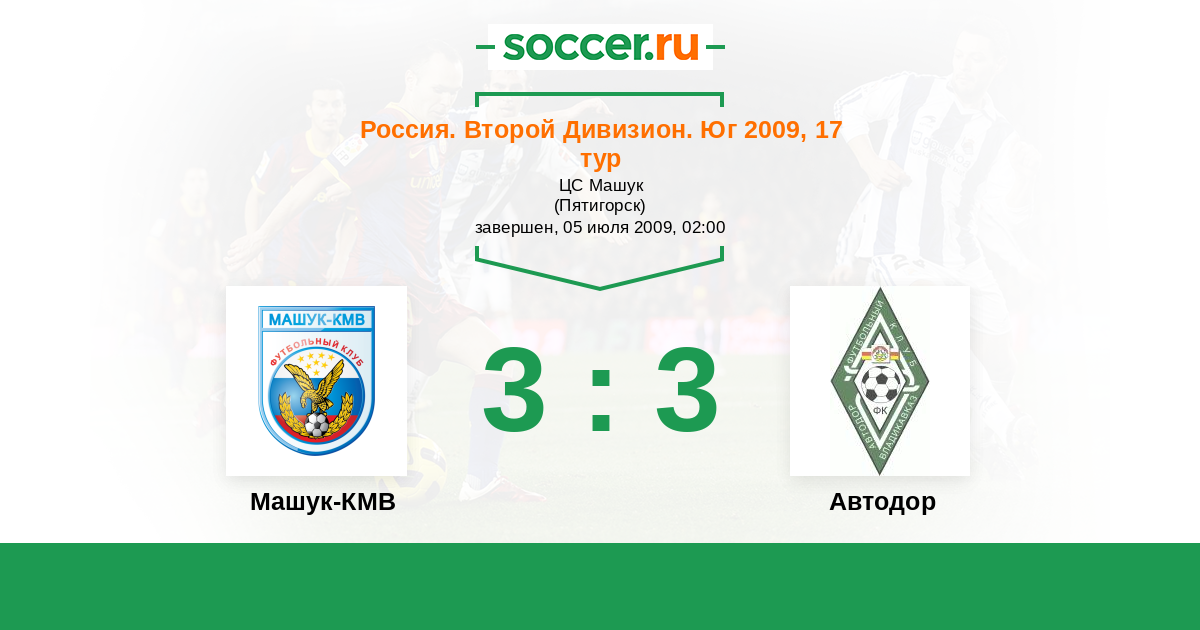 Россия. Вторая лига. Группа 1 28.06.2010 Машук-КМВ Логотип футбольный клуб Машук-КМВ (Пятигорск) 3:2 Логотип футбольный клуб Автодор (Владикавказ) Автодор