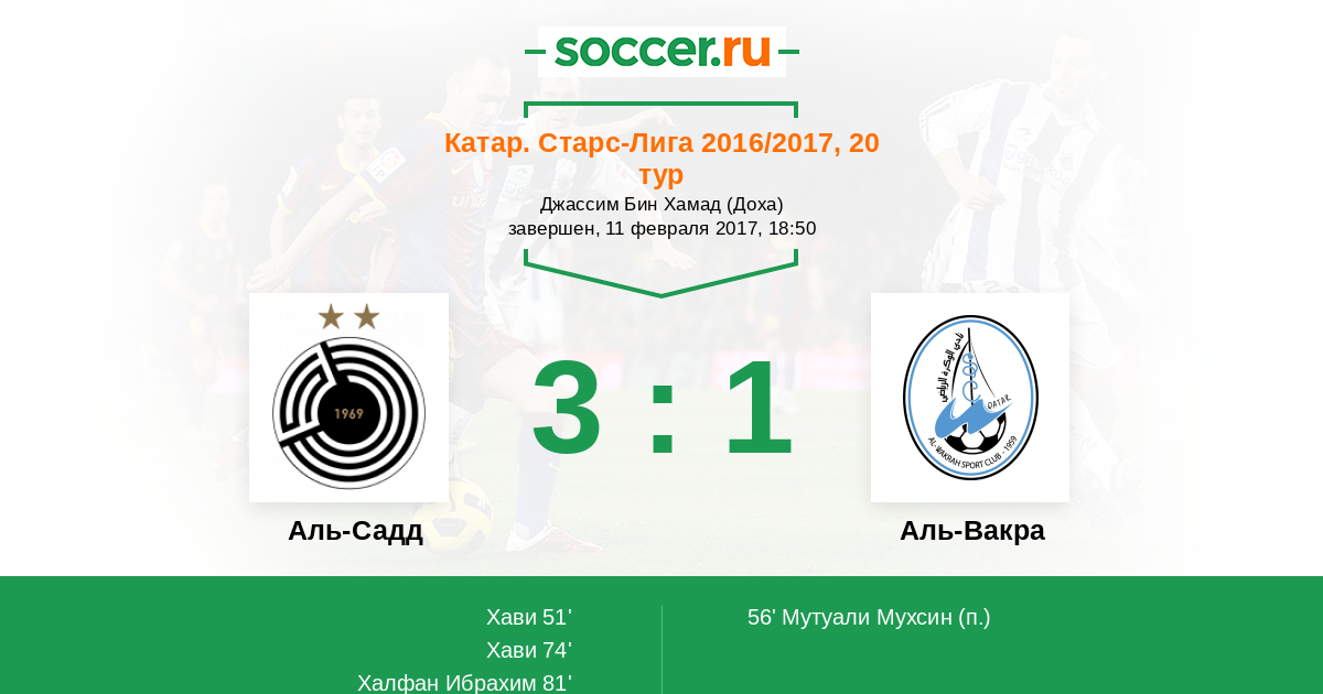Катар. Старс Лига 20.03.2011 Аль-Вакра Логотип футбольный клуб Аль-Вакра 0:1 Логотип футбольный клуб Аль-Садд (Доха) Аль-Садд