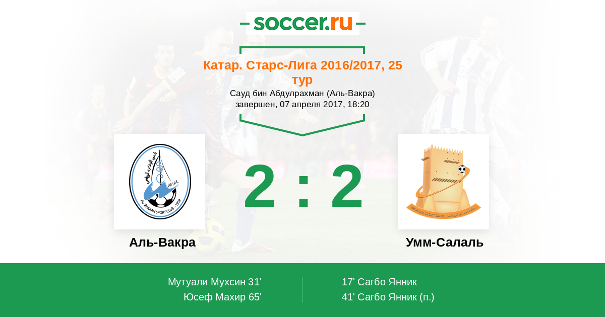 Катар. Старс Лига 17.12.2016 Умм-Салаль Логотип футбольный клуб Умм-Салаль 3:1 Логотип футбольный клуб Аль-Вакра Аль-Вакра