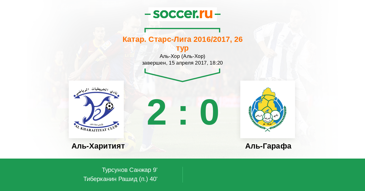 Катар. Старс Лига 12.04.2015 Аль-Гарафа Логотип футбольный клуб Аль-Гарафа (Доха) 1:3 Логотип футбольный клуб Аль-Харитият Аль-Харитият