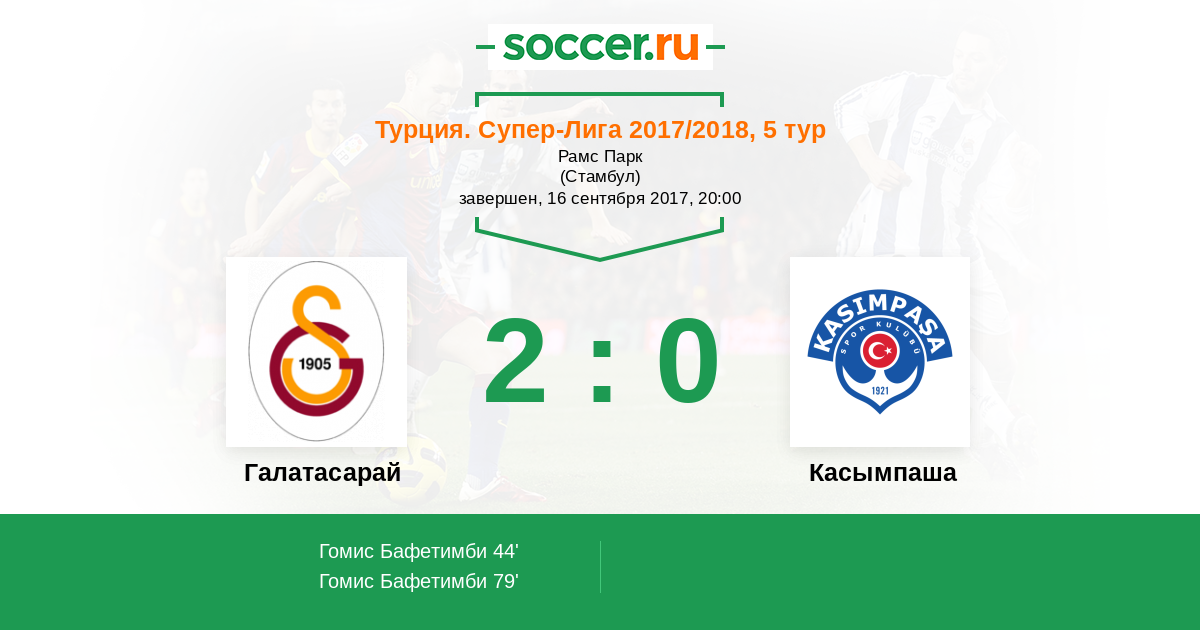 Турция. Суперлига 13.09.2019 Галатасарай Логотип футбольный клуб Галатасарай (Стамбул) 1:0 Логотип футбольный клуб Касымпаша (Стамбул) Касымпаша