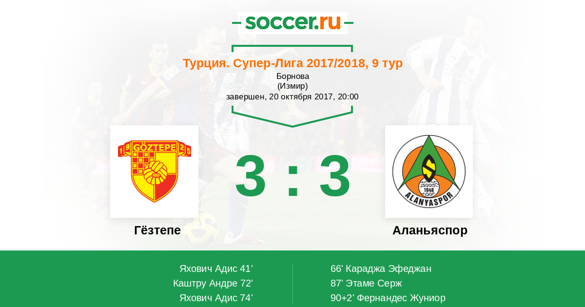 Турция. Суперлига 18.03.2018 Аланьяспор Логотип футбольный клуб Аланьяспор 1:1 Логотип футбольный клуб Гёзтепе (Измир) Гёзтепе