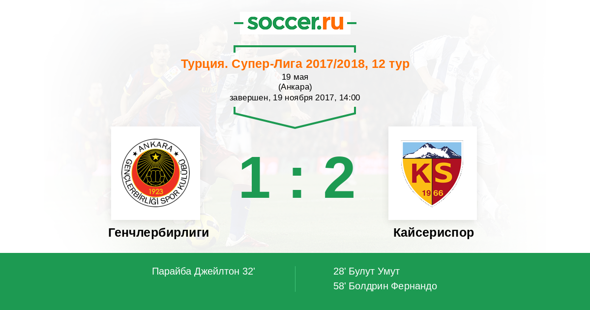 Турция. Суперлига 20.11.2016 Кайсериспор Логотип футбольный клуб Кайсериспор 0:2 Логотип футбольный клуб Генчлербирлиги (Анкара) Генчлербирлиги