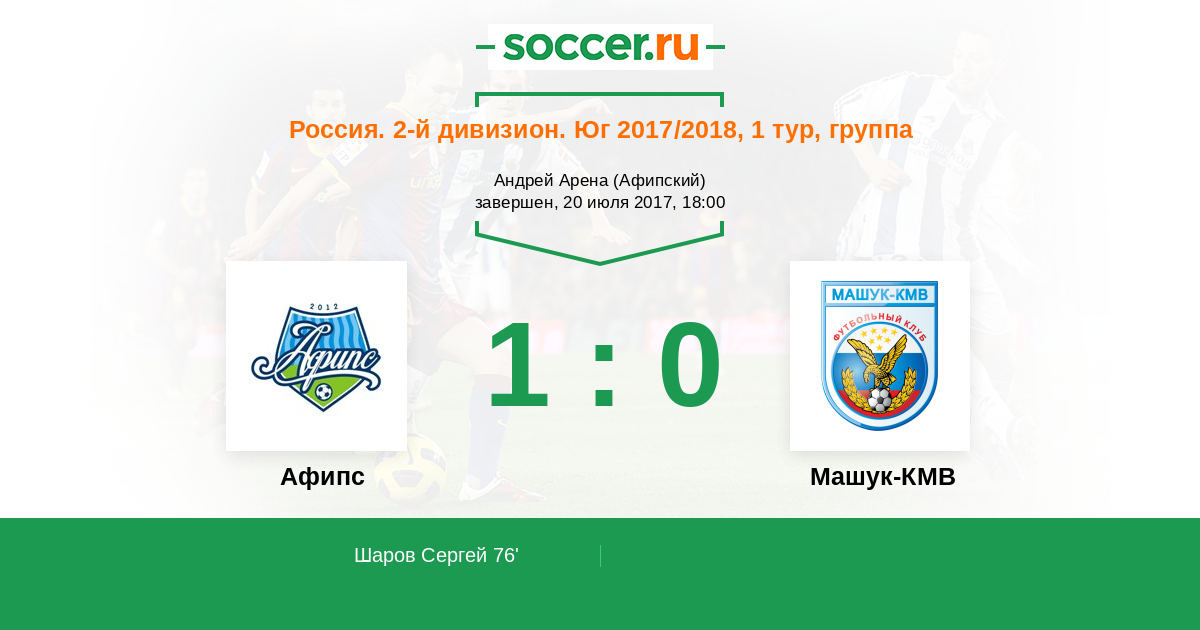 Россия. Вторая лига. Группа 1 27.05.2018 Машук-КМВ   0:0 Логотип футбольный клуб Афипс (Афипский) Афипс