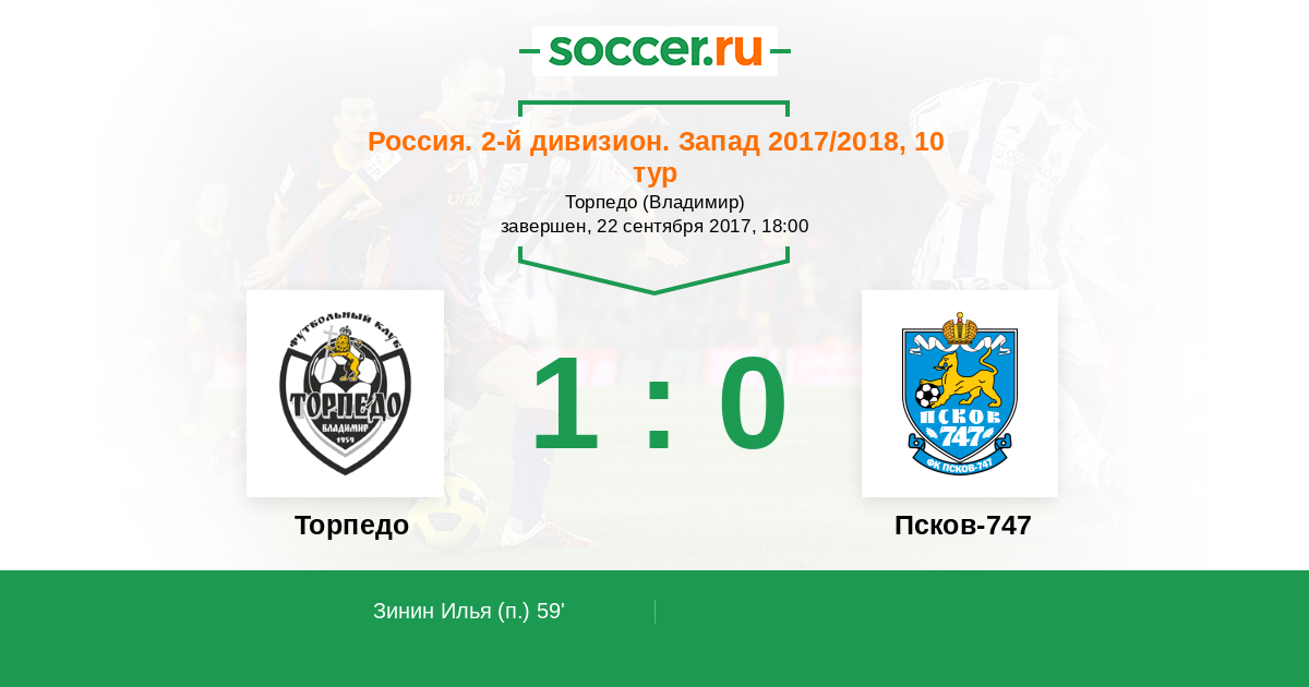 Россия. Вторая лига. Группа 2 04.09.2014 Торпедо Логотип футбольный клуб Торпедо (Владимир) 1:0 Логотип футбольный клуб Псков-747 Псков-747