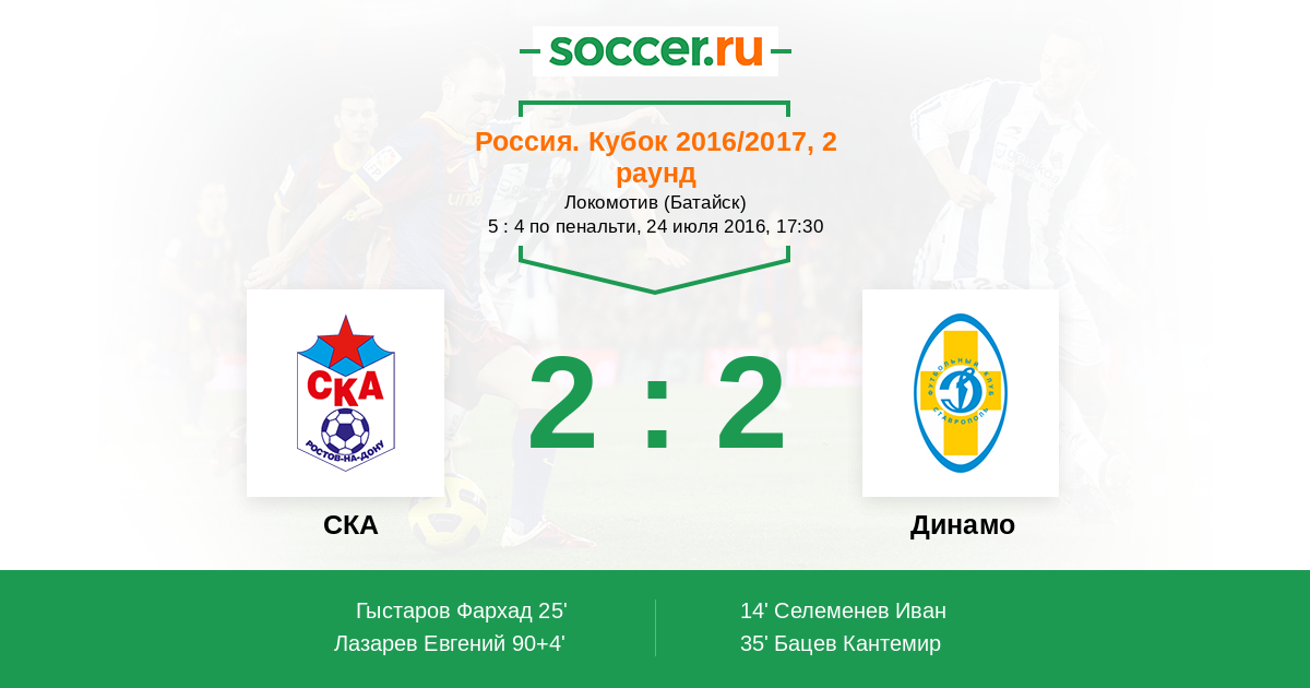 Россия. Вторая лига. Группа 1 04.08.2016 Динамо Ставрополь Логотип футбольный клуб Динамо Ставрополь 1:0 Логотип футбольный клуб СКА (Ростов-на-Дону) СКА