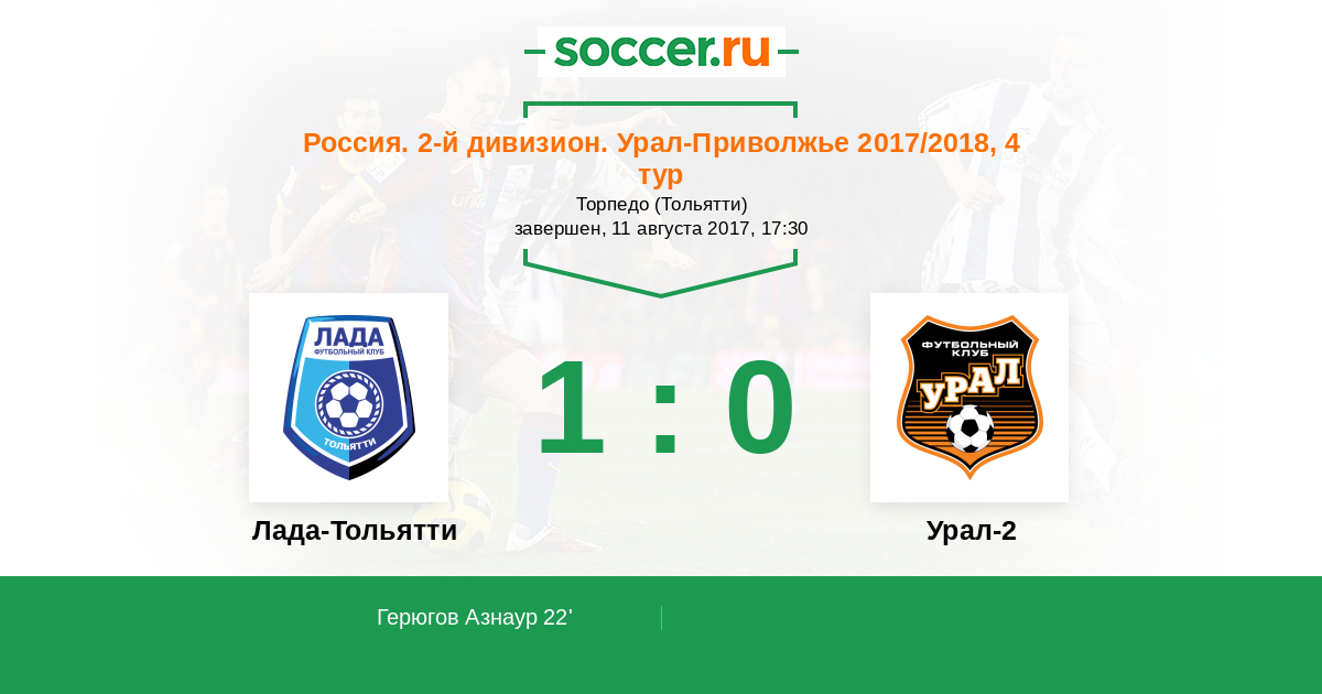 Россия. Вторая лига. Группа 4 28.10.2017 Урал-2 Логотип футбольный клуб Урал-2 (Екатеринбург) 2:3 Логотип футбольный клуб Лада-Тольятти Лада-Тольятти